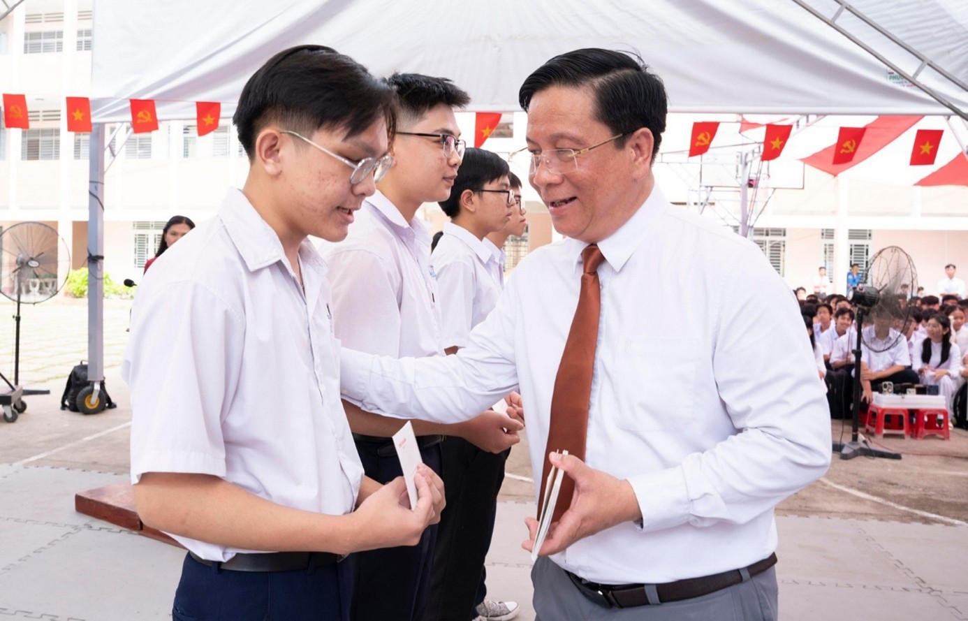 Ủy viên dự khuyết Ban Chấp hành Trung ương Đảng, Phó Bí thư Tỉnh ủy, Chủ tịch UBND tỉnh An Giang Hồ Văn Mừng dự lễ khai giảng năm học 2025 – 2026 tại Trường Trung học phổ thông chuyên Thoại Ngọc Hầu